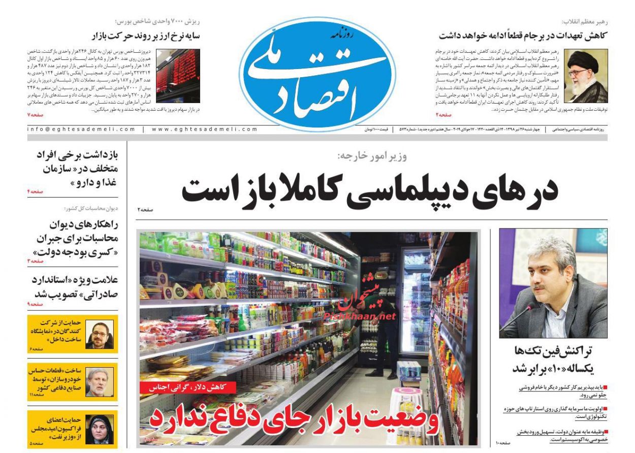 اقتصاد ملی ، چهارشنبه ۲۶ تیر