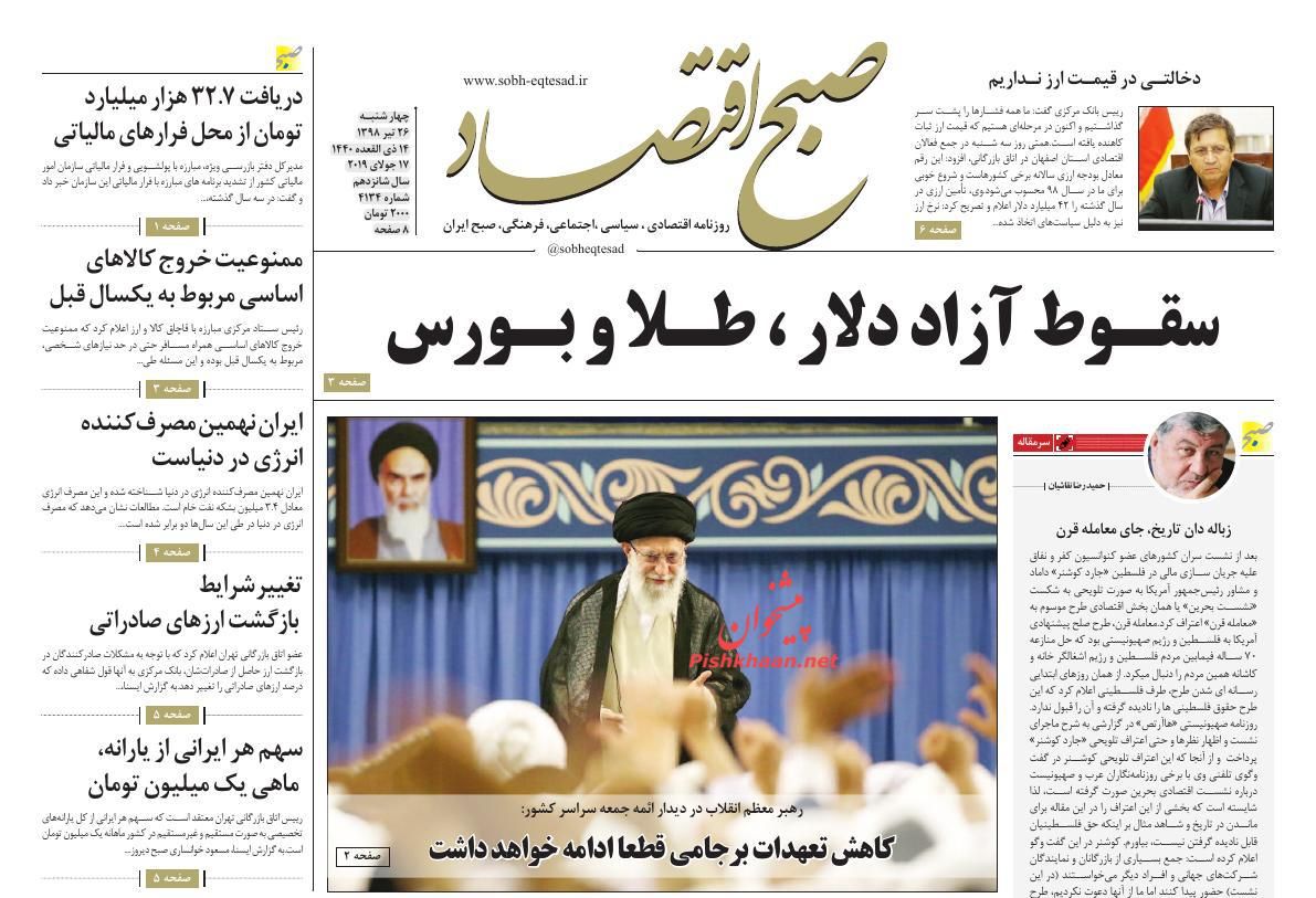 صبح اقتصاد ، چهارشنبه ۲۶ تیر
