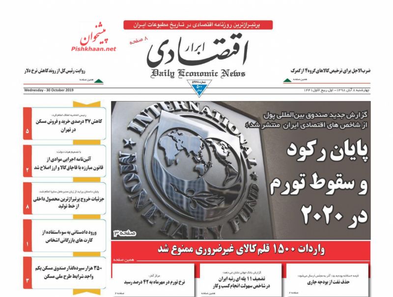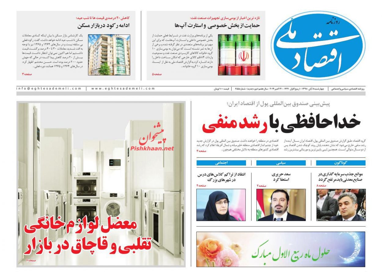 اقتصاد ملی ، چهارشنبه ۸ آبان