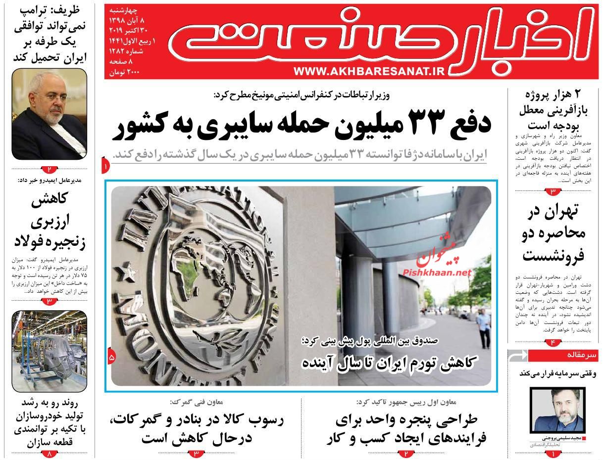 اخبار صنعت ، چهارشنبه ۸ آبان