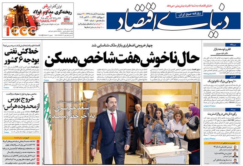 دنیای اقتصاد ، چهارشنبه ۸ آبان