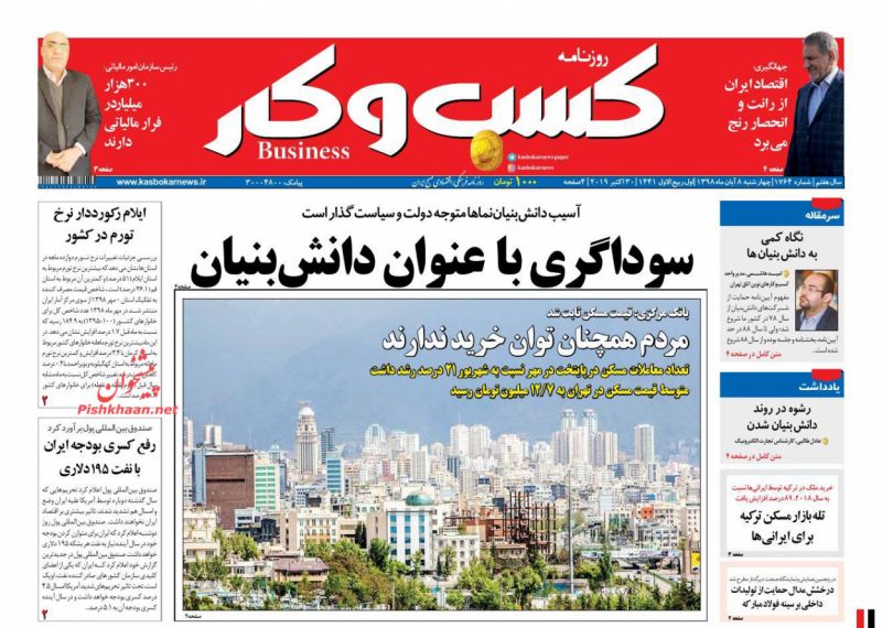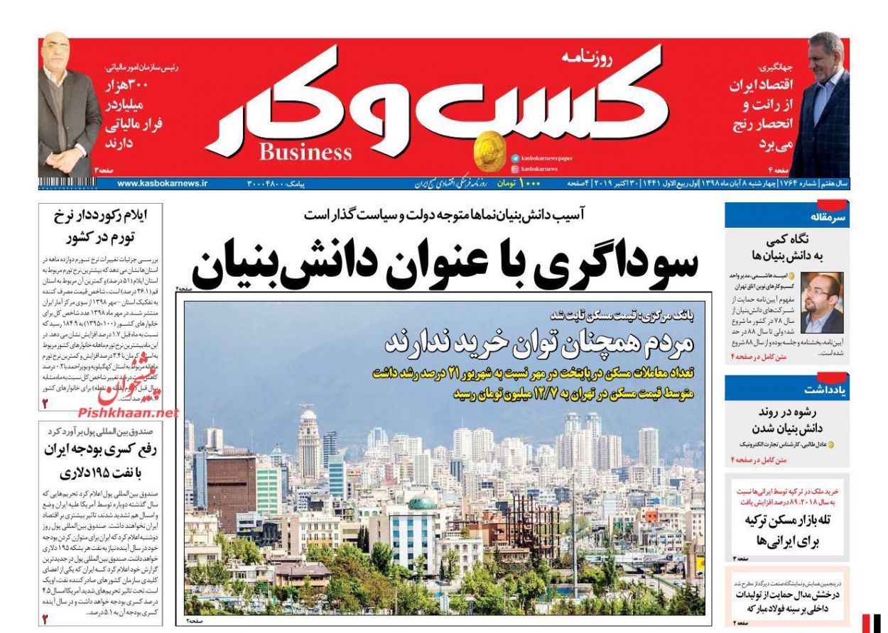اقتصاد سرآمد ، چهارشنبه ۸ آبان