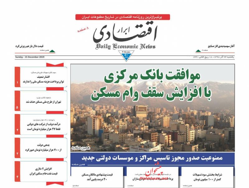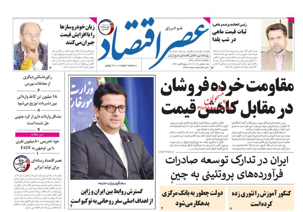 عصر اقتصاد ، یکشنبه ۲۴ آذر