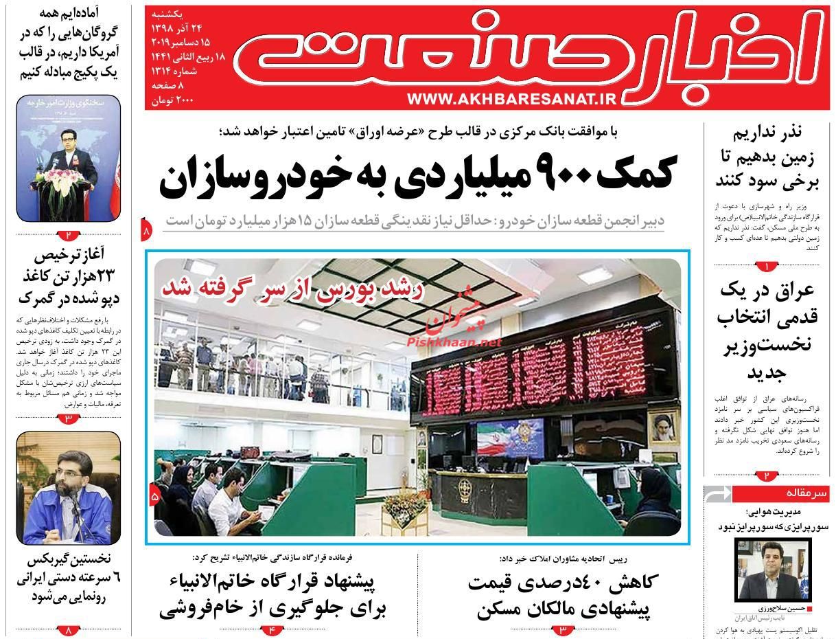اخبار صنعت ، یکشنبه ۲۴ آذر