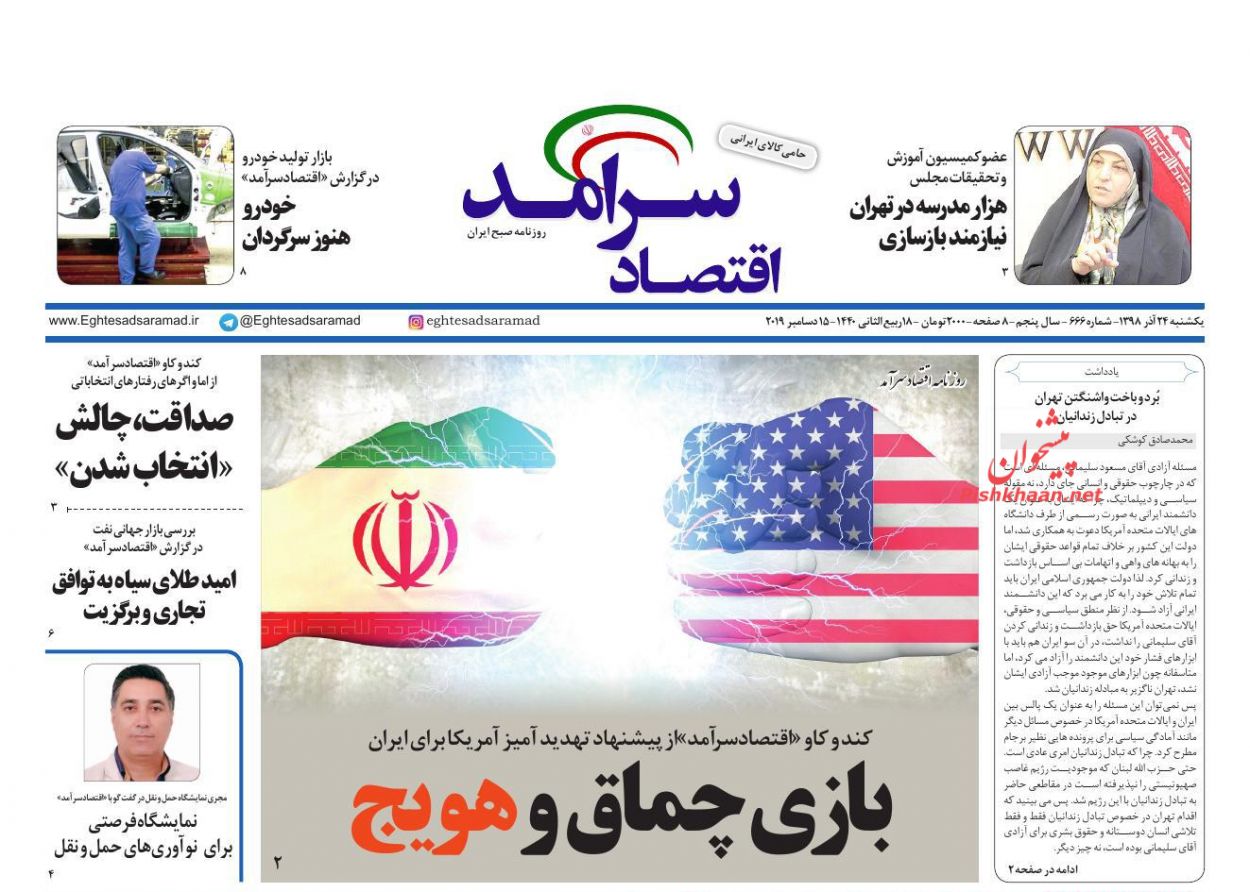 اقتصاد سرآمد ، یکشنبه ۲۴ آذر