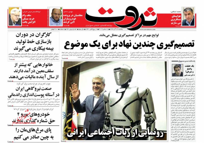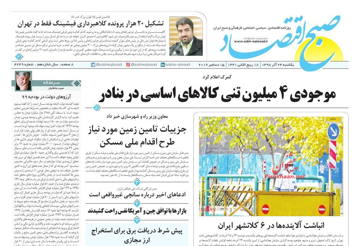 ابرار اقتصادی ، یکشنبه ۲۴ آذر