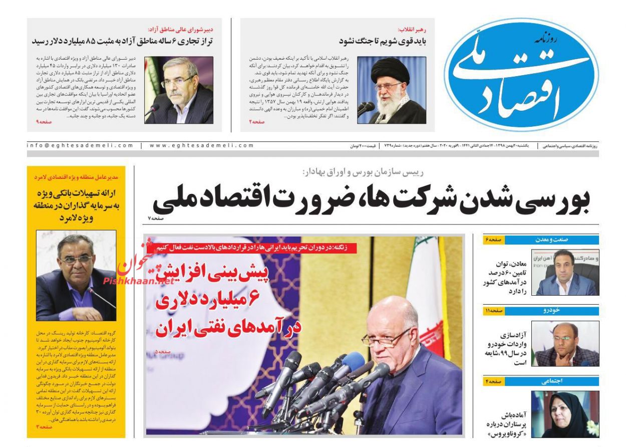 اقتصاد ملی ، یکشنبه ۲۰ بهمن