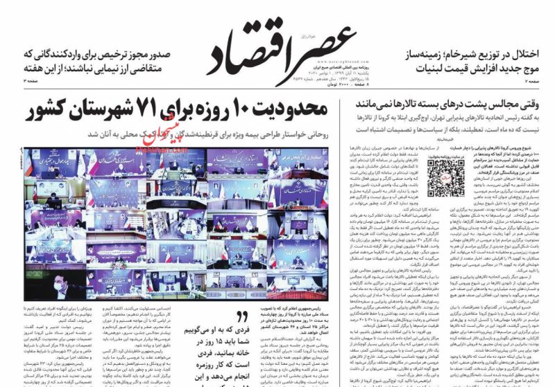 عصر اقتصاد ، یکشنبه ۱۱ آبان
