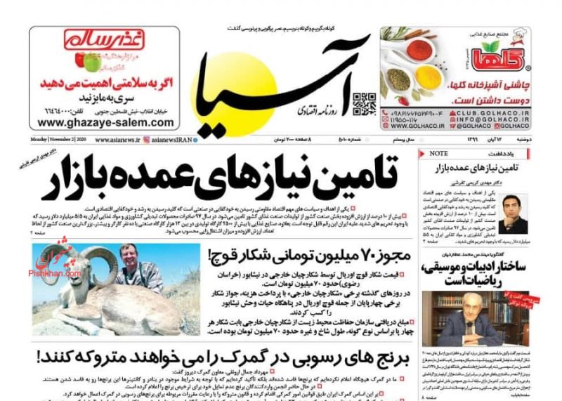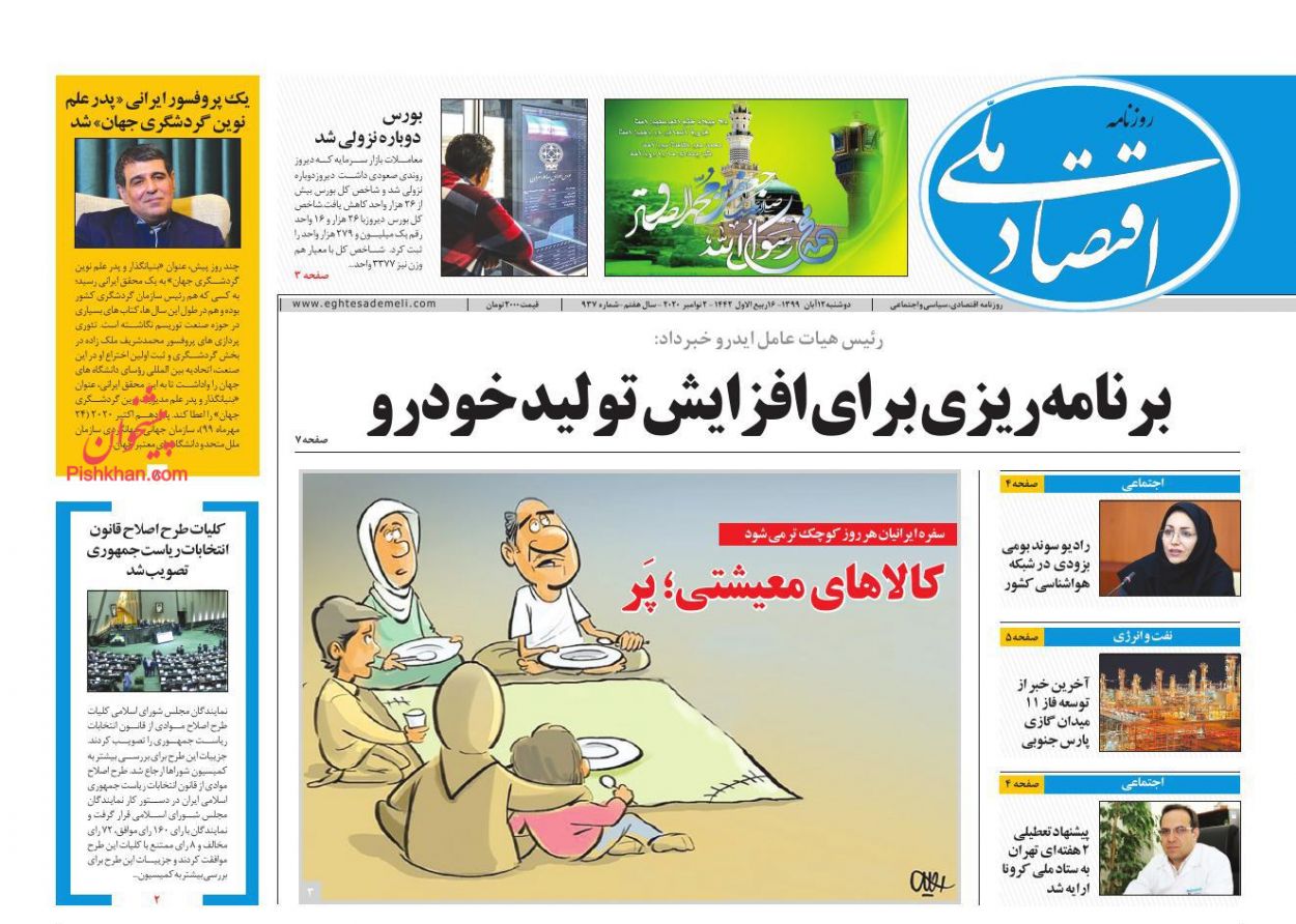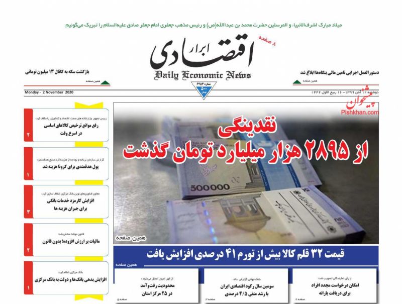 اقتصاد ملی ، دوشنبه ۱۲ آبان