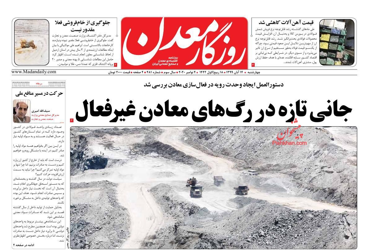 روزگار معدن ، چهارشنبه ۱۴ آبان