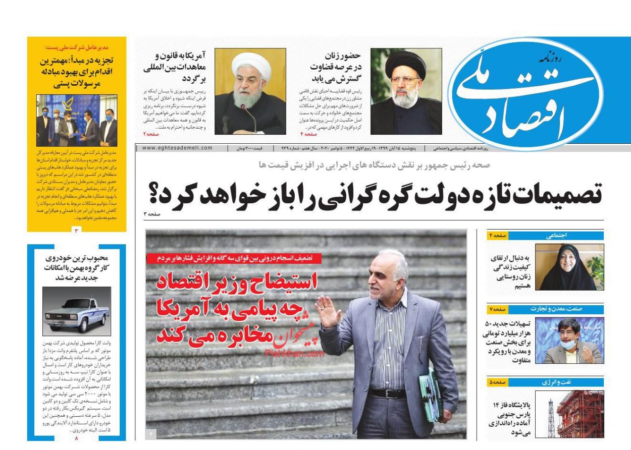 اقتصاد ملی ، پنجشنبه ۱۵ آبان