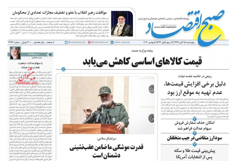 ابرار اقتصادی ، دوشنبه ۱۲ آبان