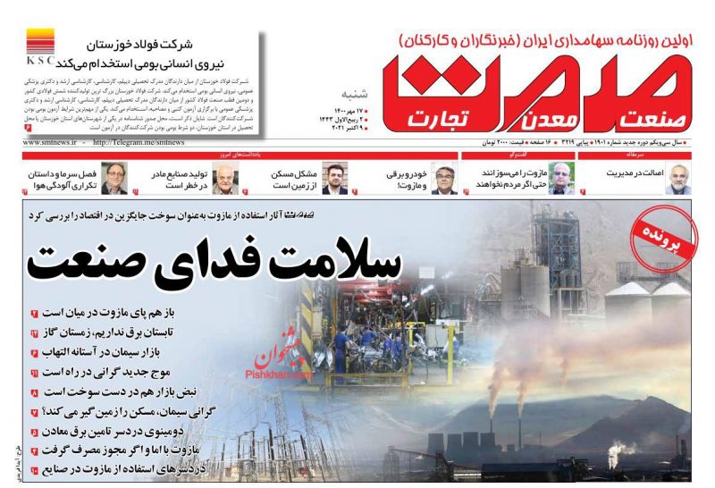 جهان صنعت ، یکشنبه ۱۸ مهر