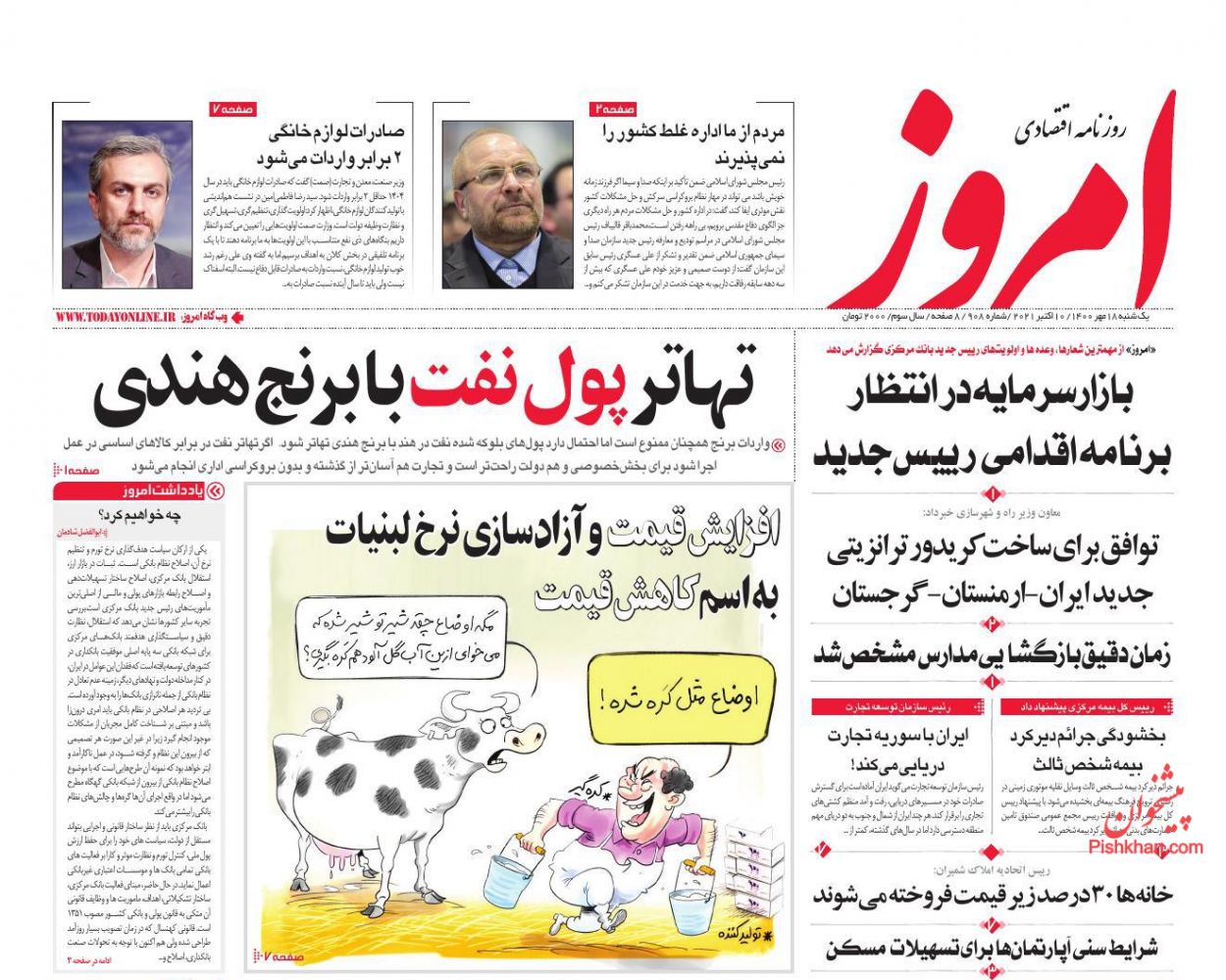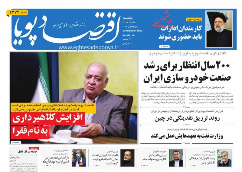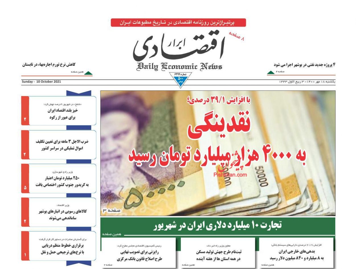 اقتصاد ملی ، یکشنبه ۱۸ مهر