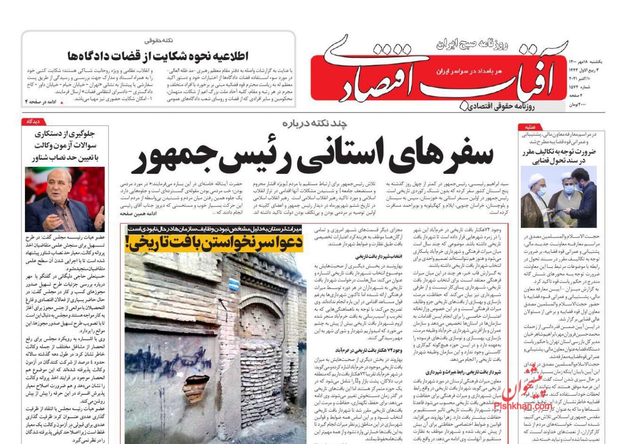 ابرار اقتصادی ، یکشنبه ۱۸ مهر