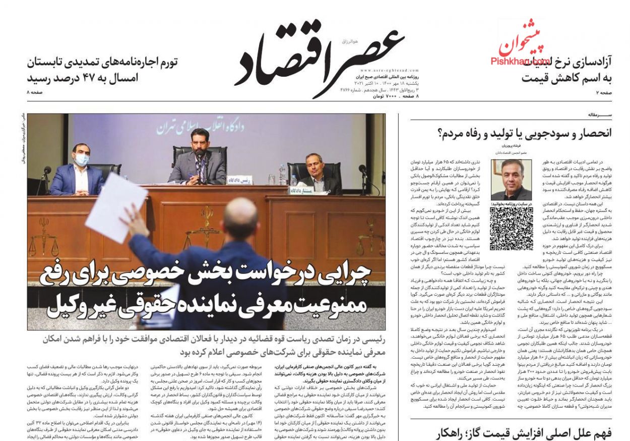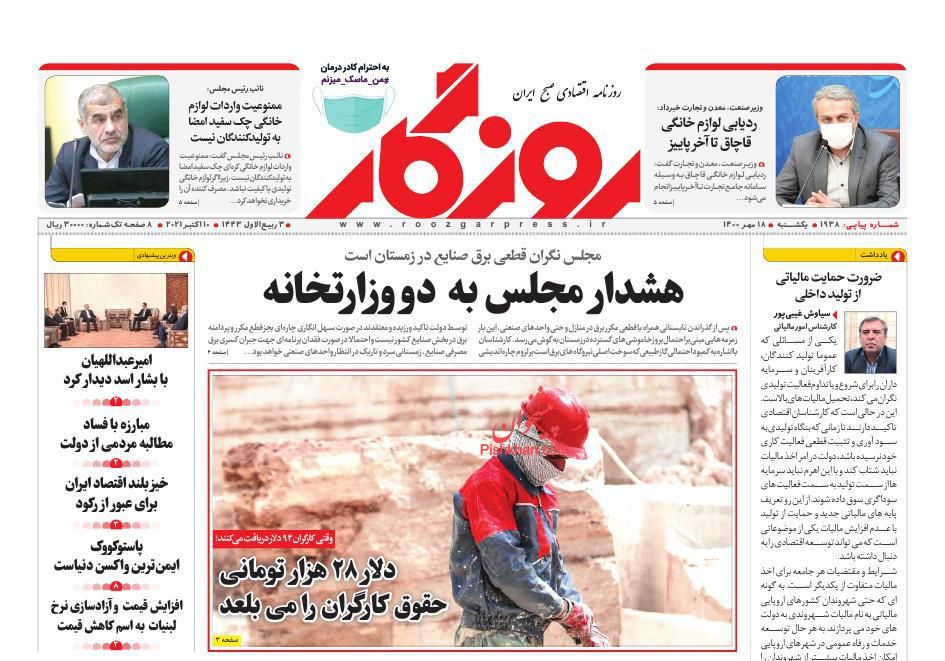 عصر اقتصاد ، یکشنبه ۱۸ مهر