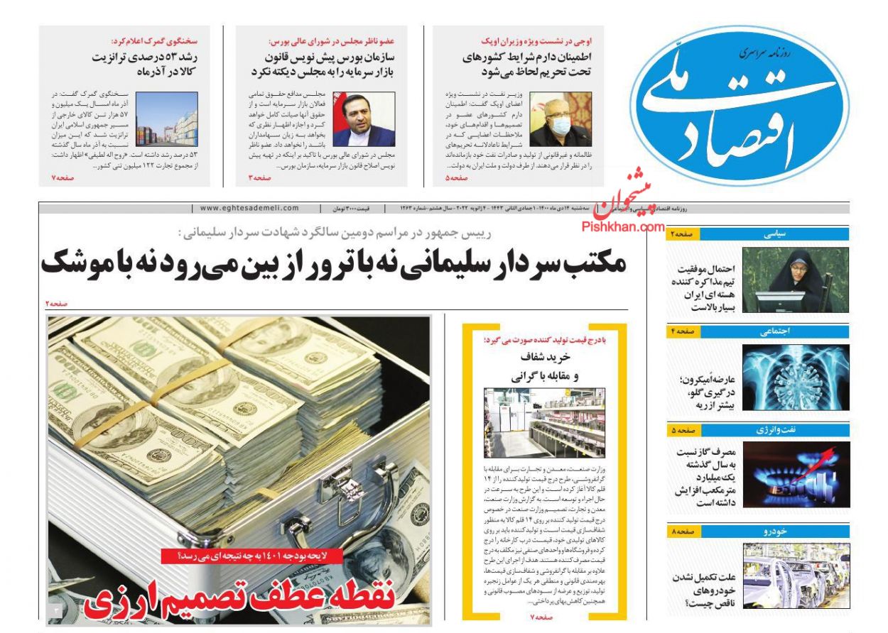 اقتصاد ملی ، سهشنبه ۱۴ دی