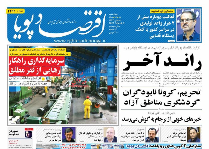 اقتصاد پویا ، چهارشنبه ۱۸ اسفند