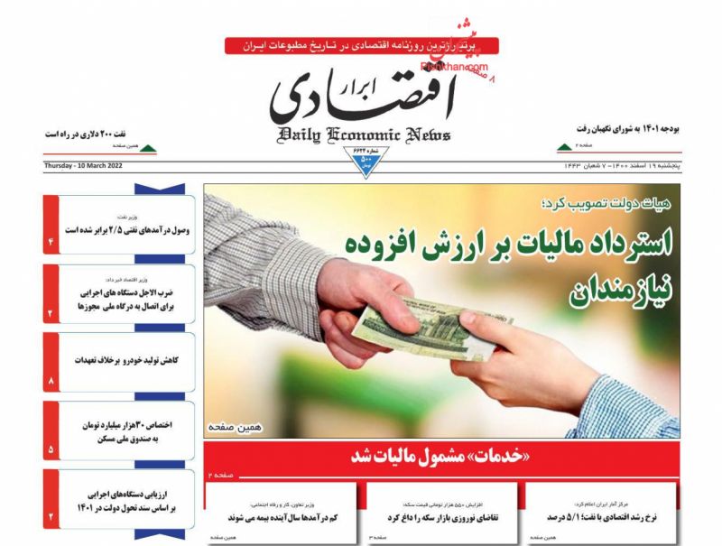 ابرار اقتصادی ، پنجشنبه ۱۹ اسفند