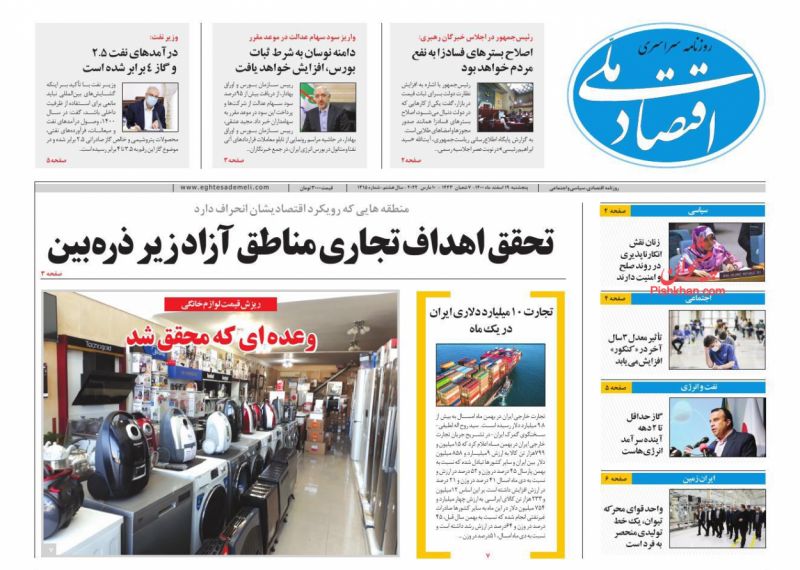 اقتصاد ملی ، پنجشنبه ۱۹ اسفند