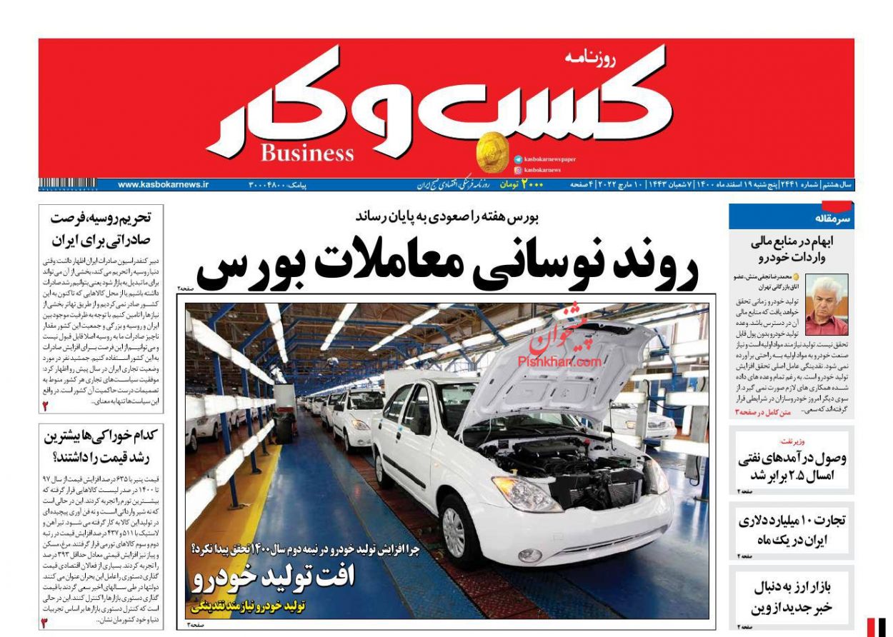 كسب و كار ، پنجشنبه ۱۹ اسفند