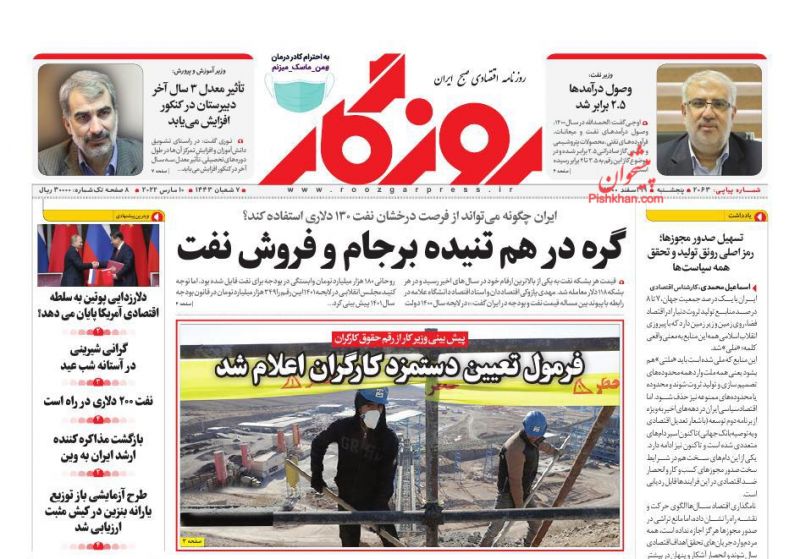 نقش اقتصاد ، چهارشنبه ۱۸ اسفند