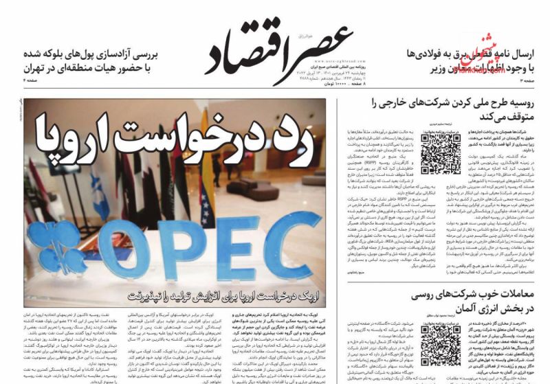 عصر اقتصاد ، چهارشنبه ۲۴ فروردين