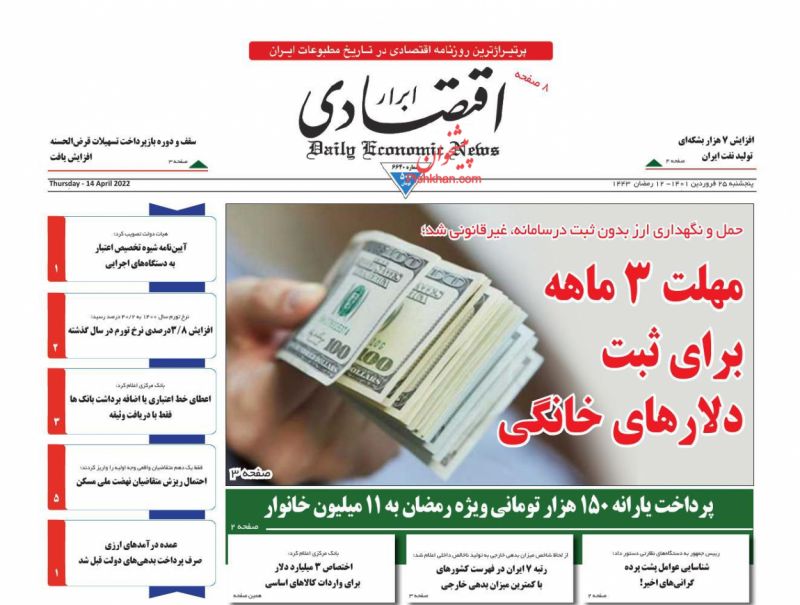 اقتصاد ملی ، چهارشنبه ۲۴ فروردين