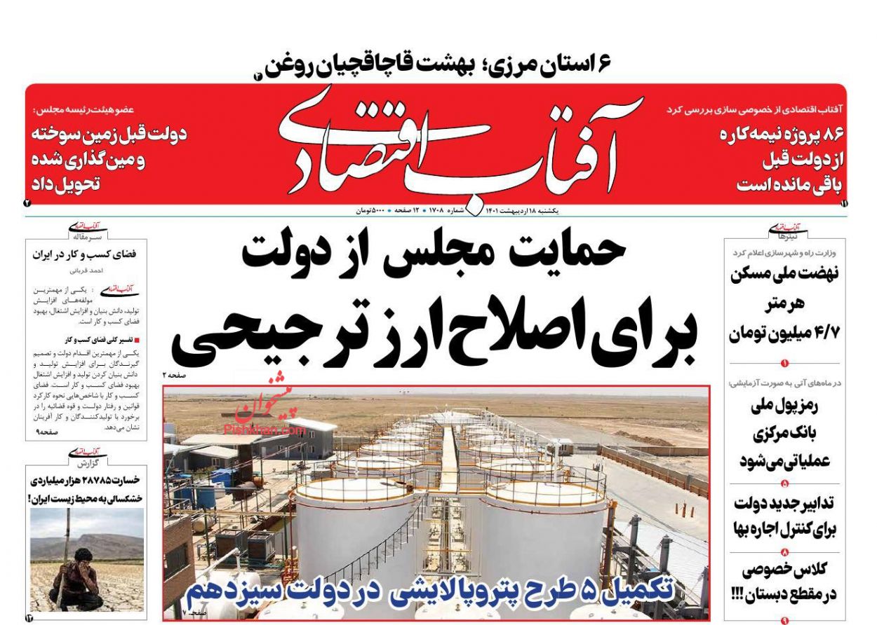 اقتصاد ملی ، یکشنبه ۱۸ ارديبهشت