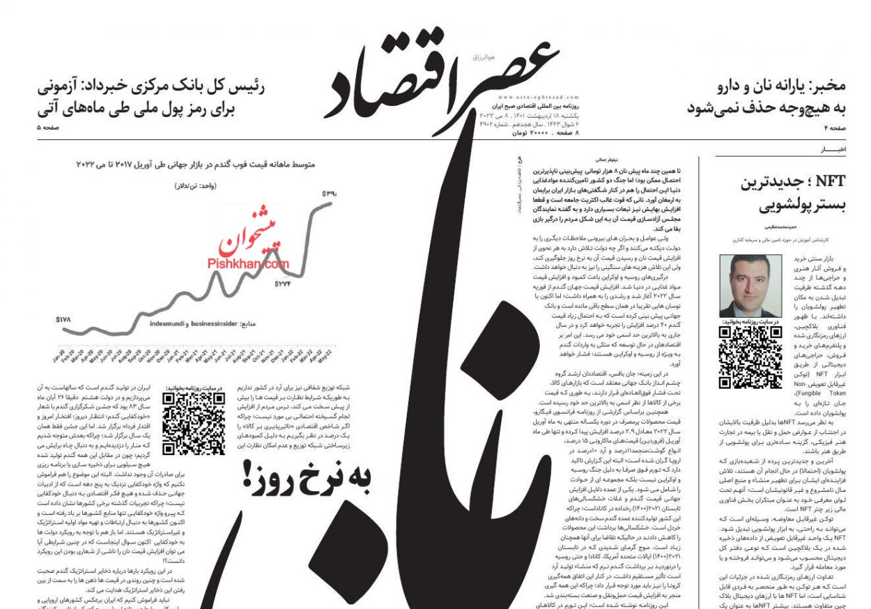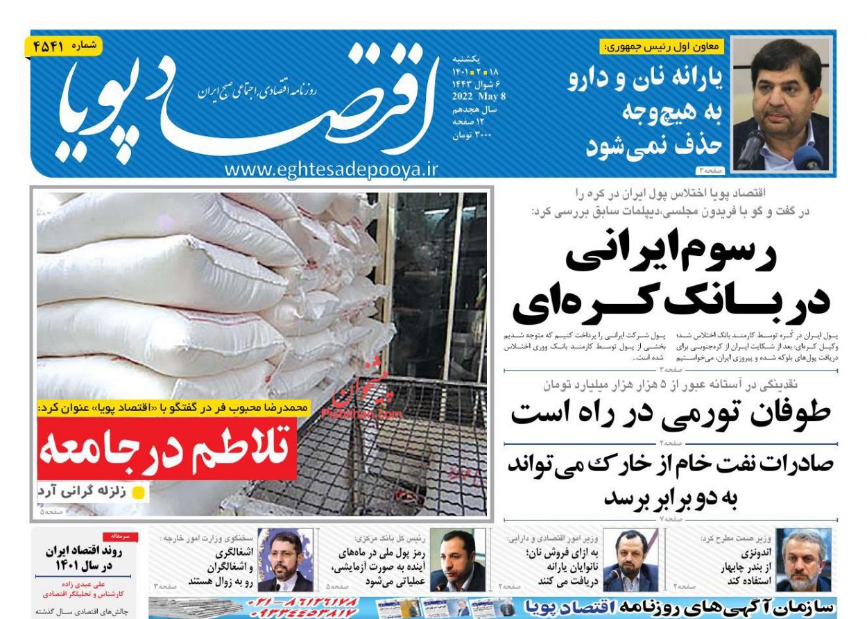 عصر اقتصاد ، یکشنبه ۱۸ ارديبهشت