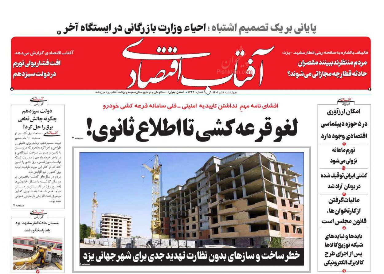 آفتاب اقتصادی ، چهارشنبه ۸ تیر