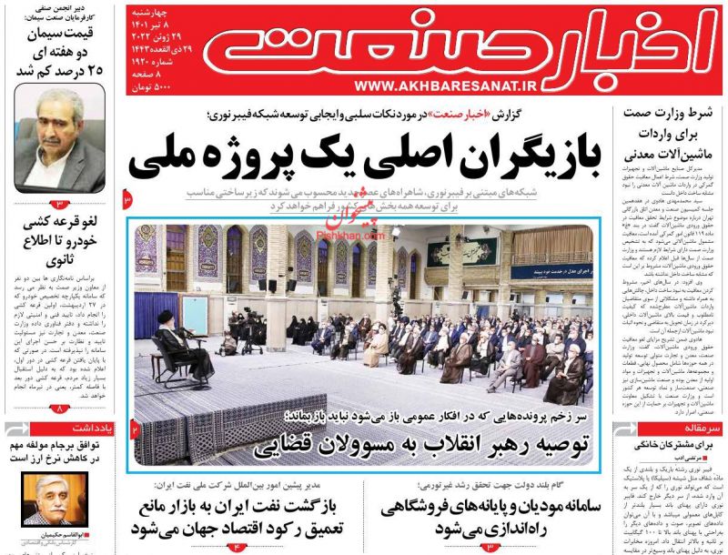 اخبار صنعت ، چهارشنبه ۸ تیر