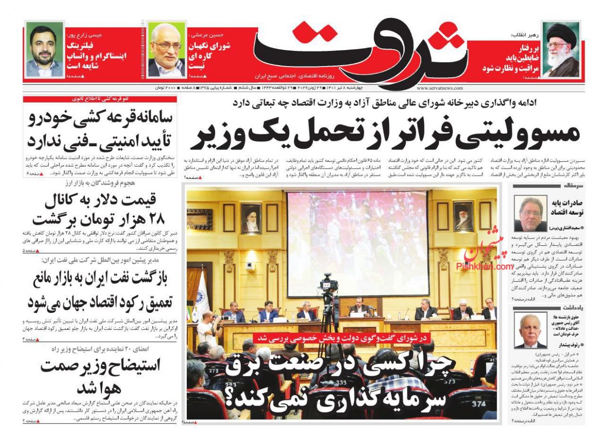 نقش اقتصاد ، چهارشنبه ۸ تیر
