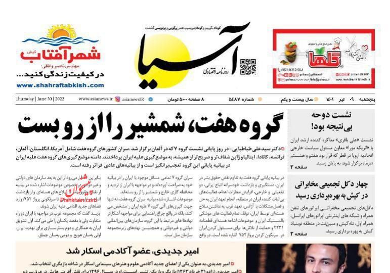 عصر اقتصاد ، سهشنبه ۷ تیر