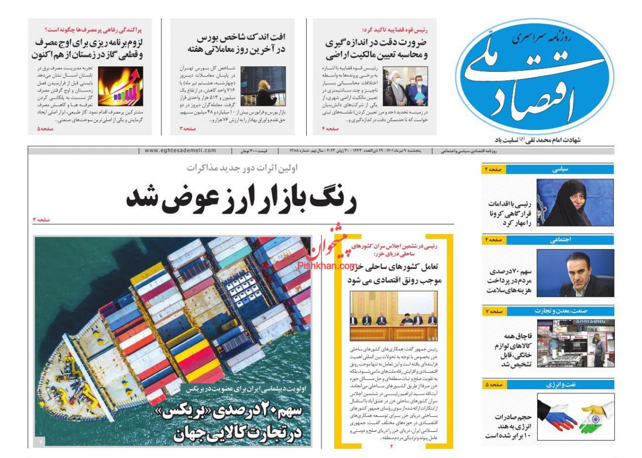 اقتصاد ملی ، پنجشنبه ۹ تیر