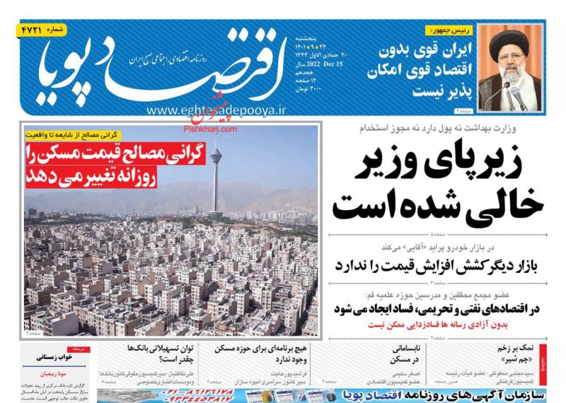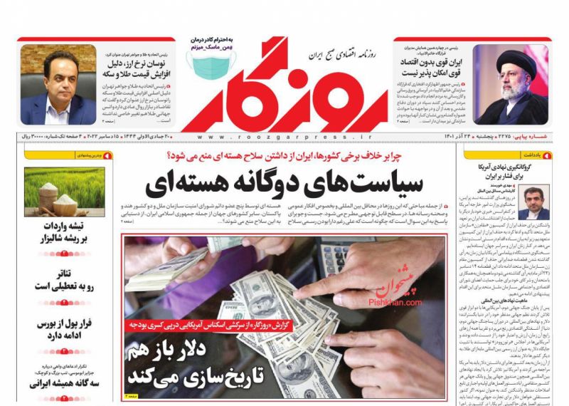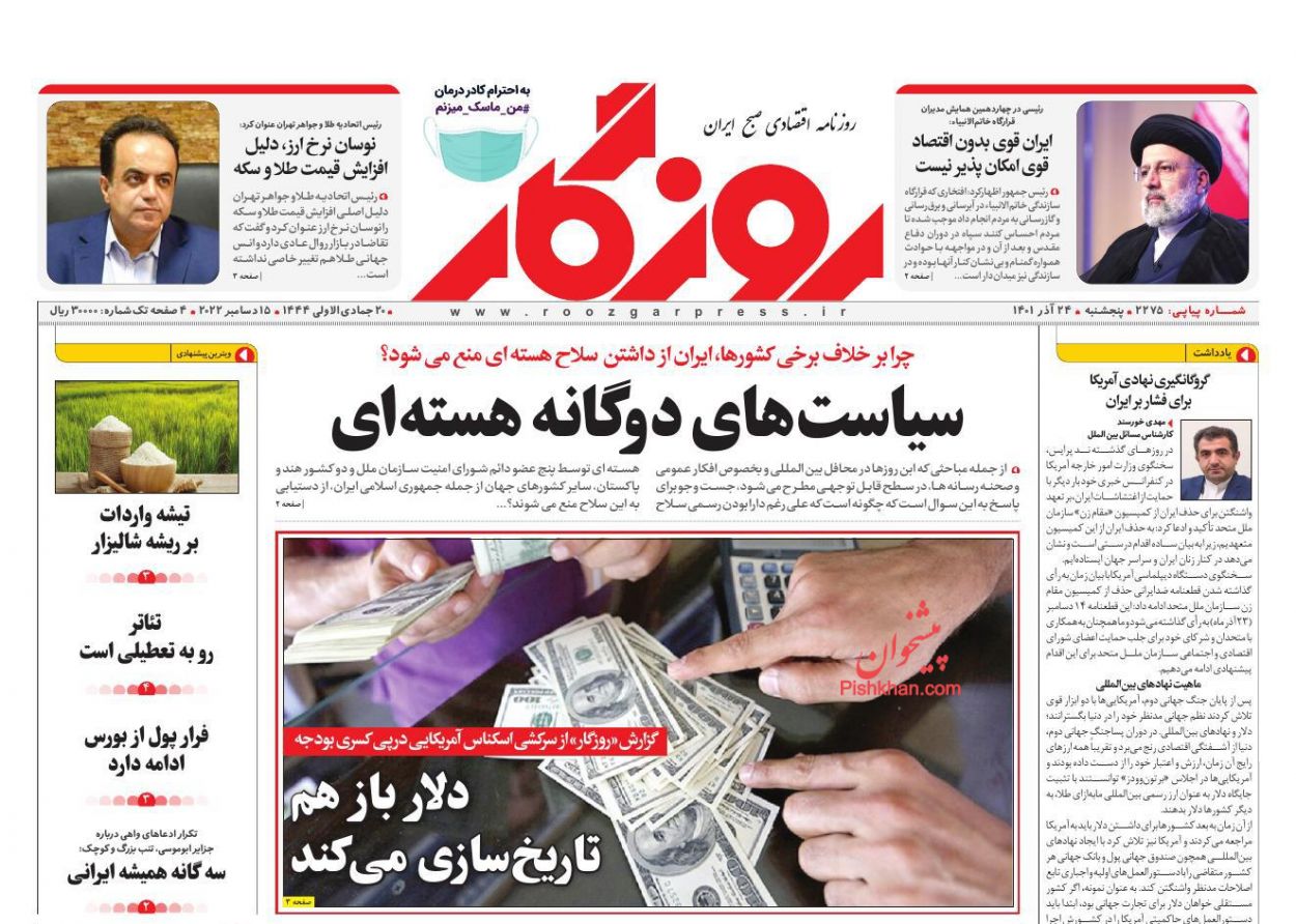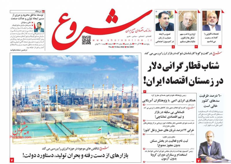 نقش اقتصاد ، چهارشنبه ۲۳ آذر