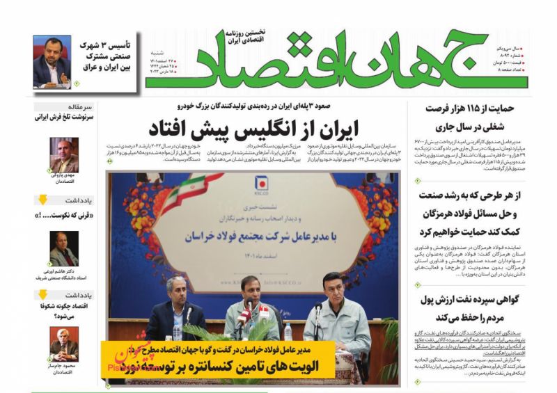 جهان اقتصاد ، شنبه ۲۷ اسفند