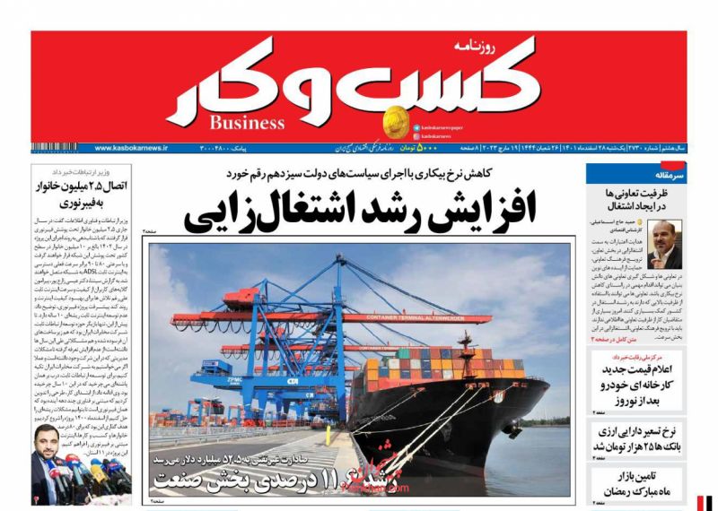 كسب و كار ، یکشنبه ۲۸ اسفند