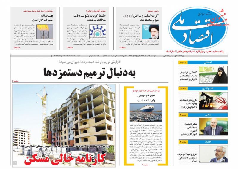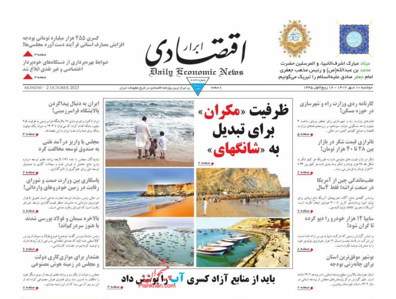 اقتصاد ملی ، دوشنبه ۱۰ مهر