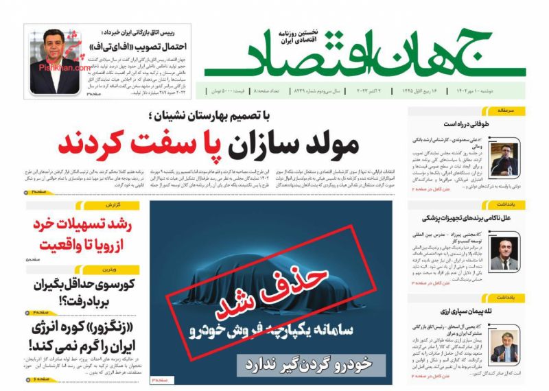 جهان اقتصاد ، دوشنبه ۱۰ مهر