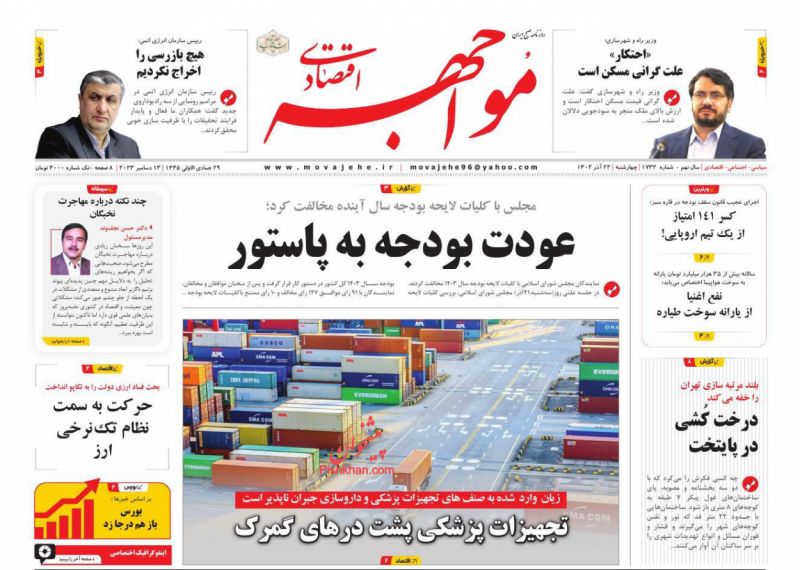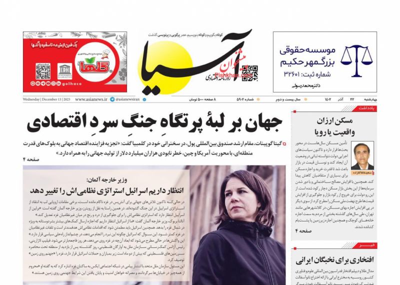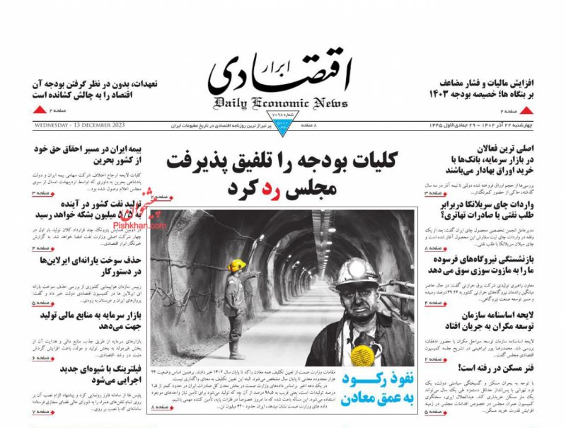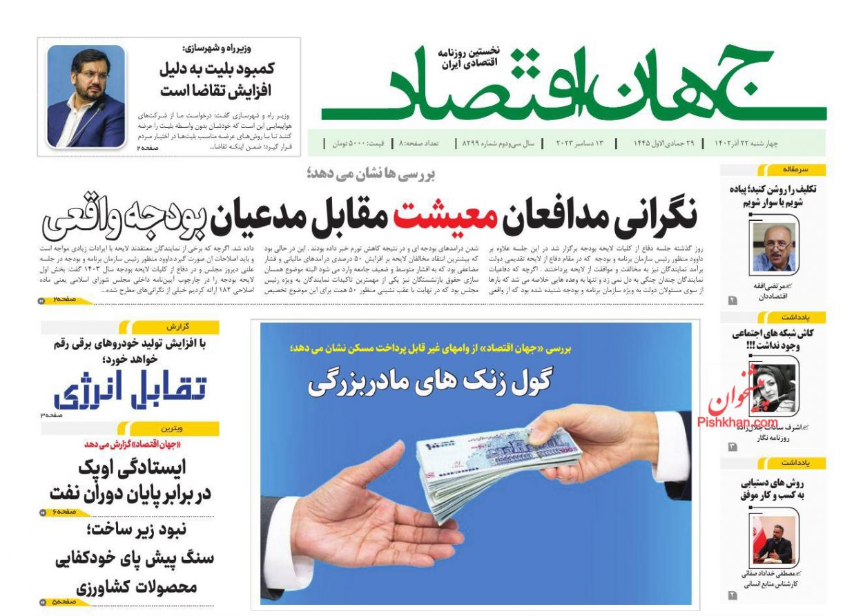 جهان اقتصاد ، چهارشنبه ۲۲ آذر