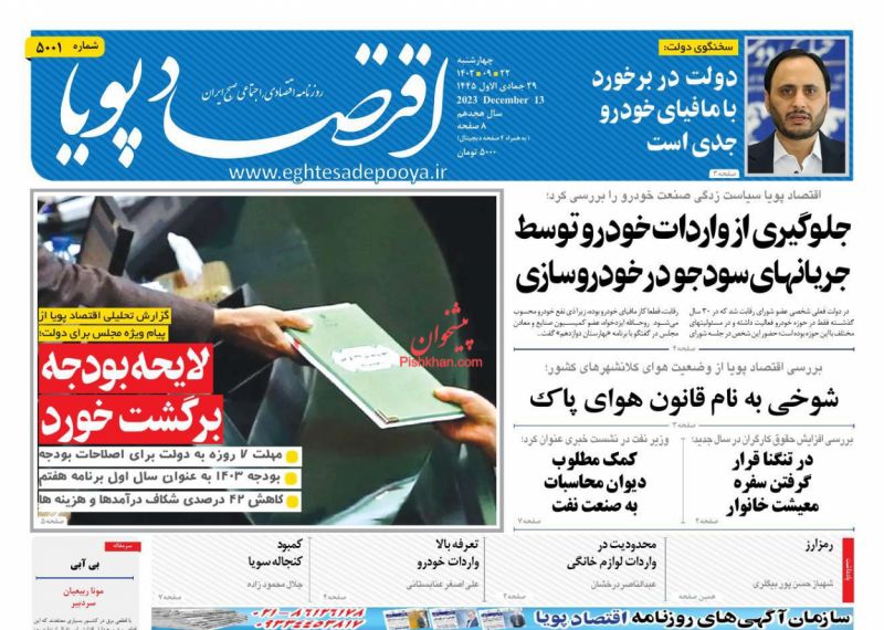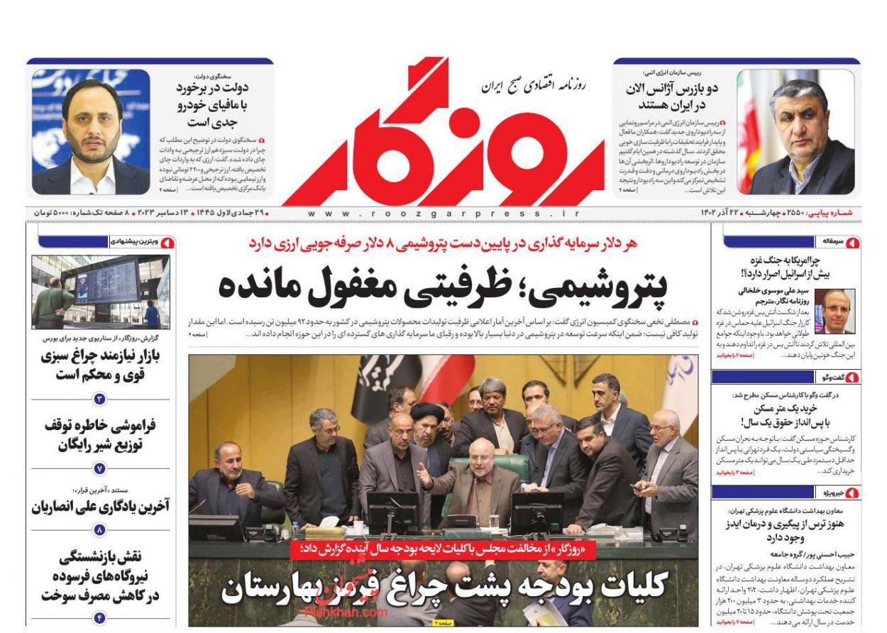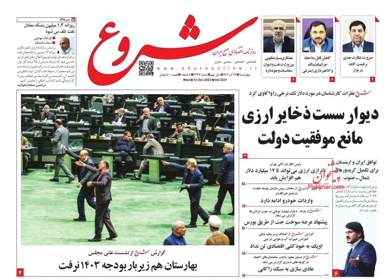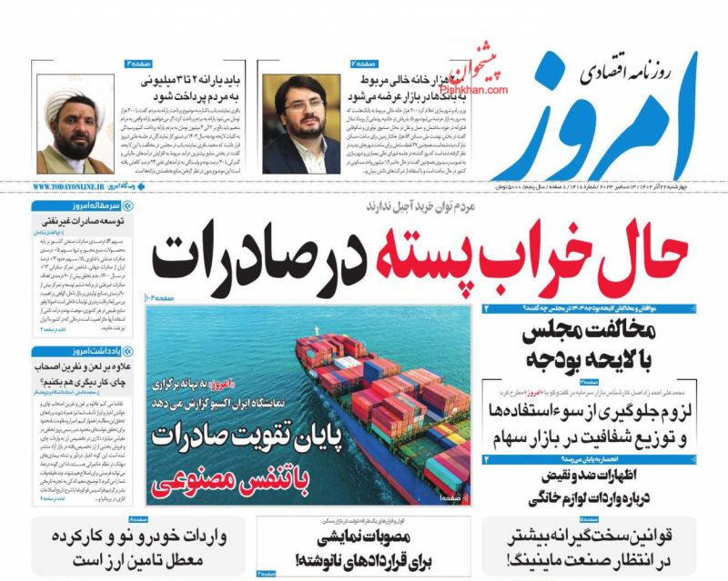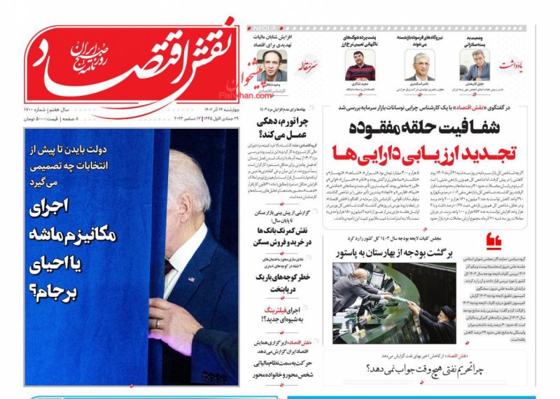 نقش اقتصاد ، چهارشنبه ۲۲ آذر