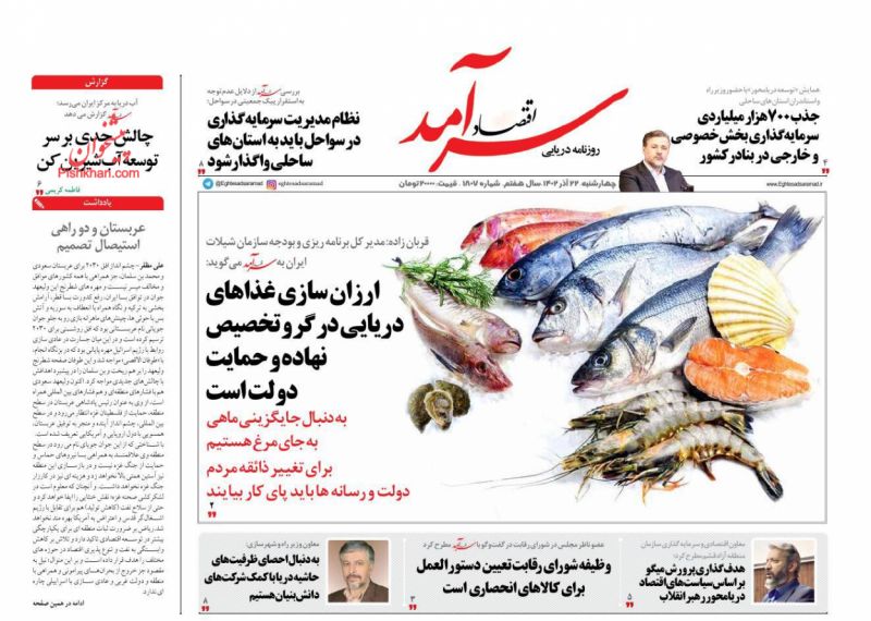 اقتصاد سرآمد ، چهارشنبه ۲۲ آذر