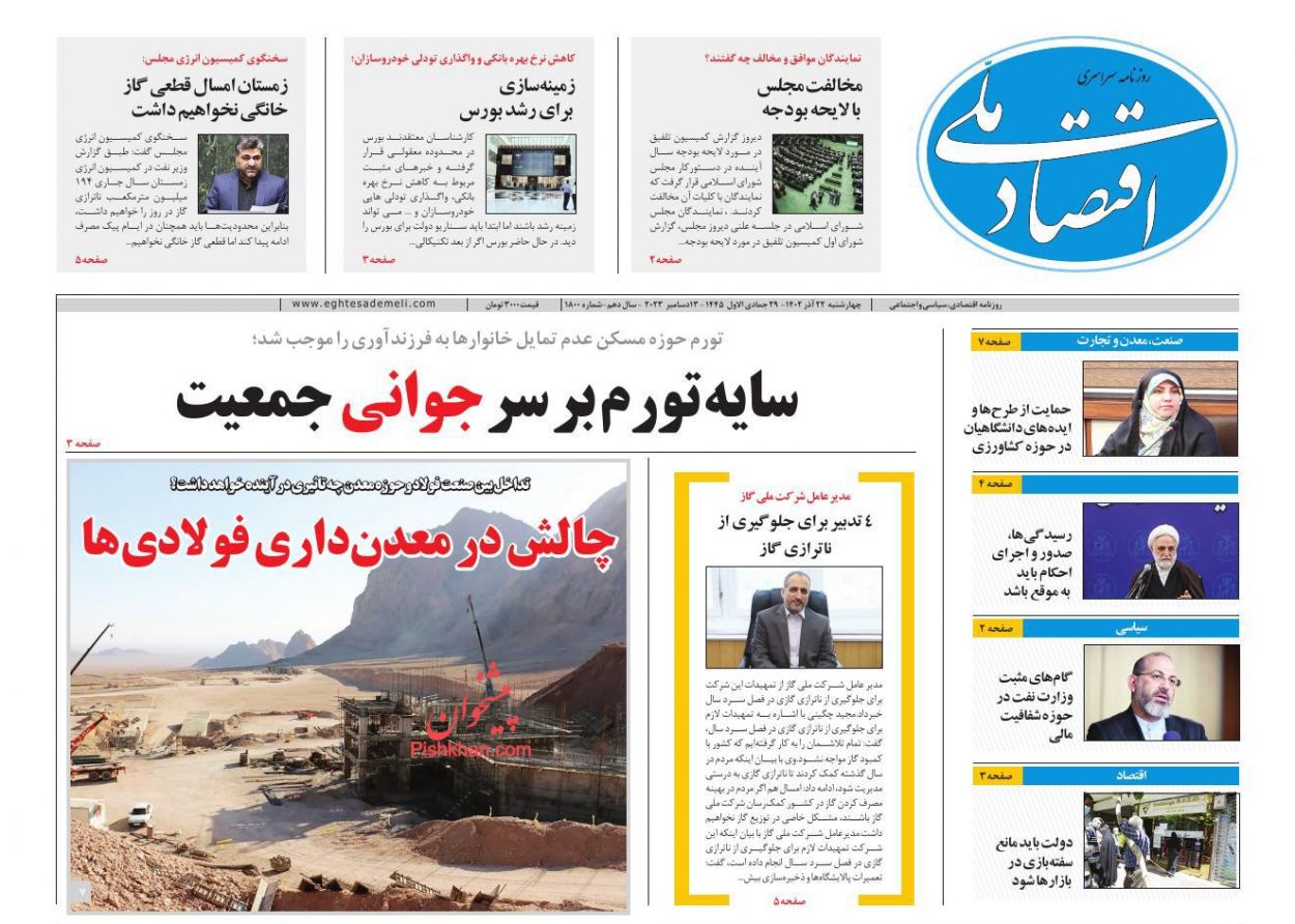اقتصاد ملی ، چهارشنبه ۲۲ آذر