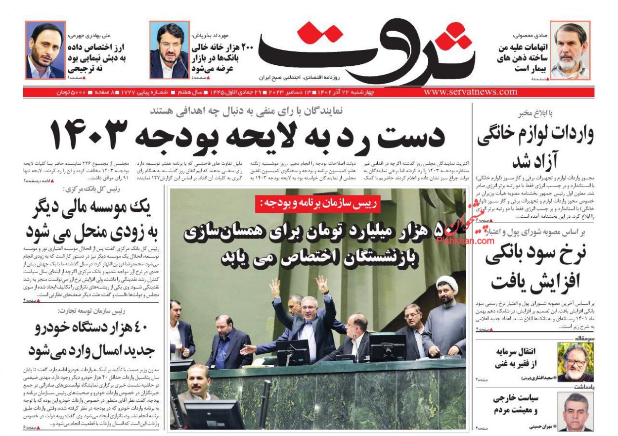 اقتصاد مردم ، چهارشنبه ۲۲ آذر