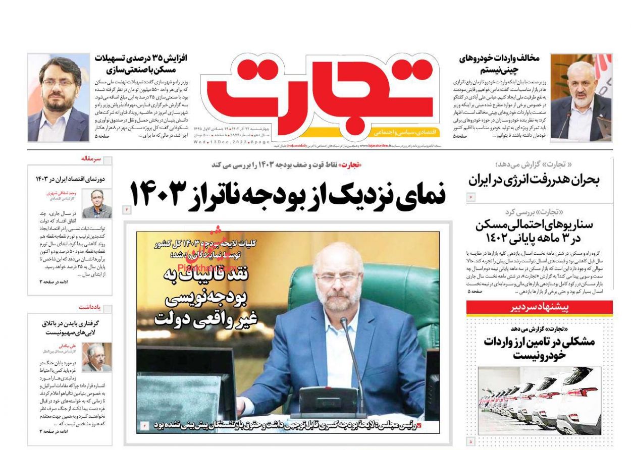 ابرار اقتصادی ، چهارشنبه ۲۲ آذر