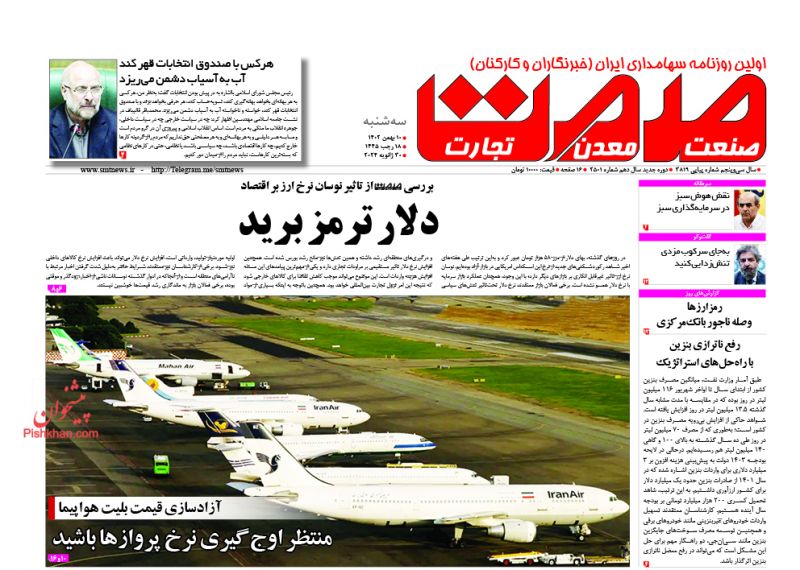 نقش اقتصاد ، سهشنبه ۱۰ بهمن