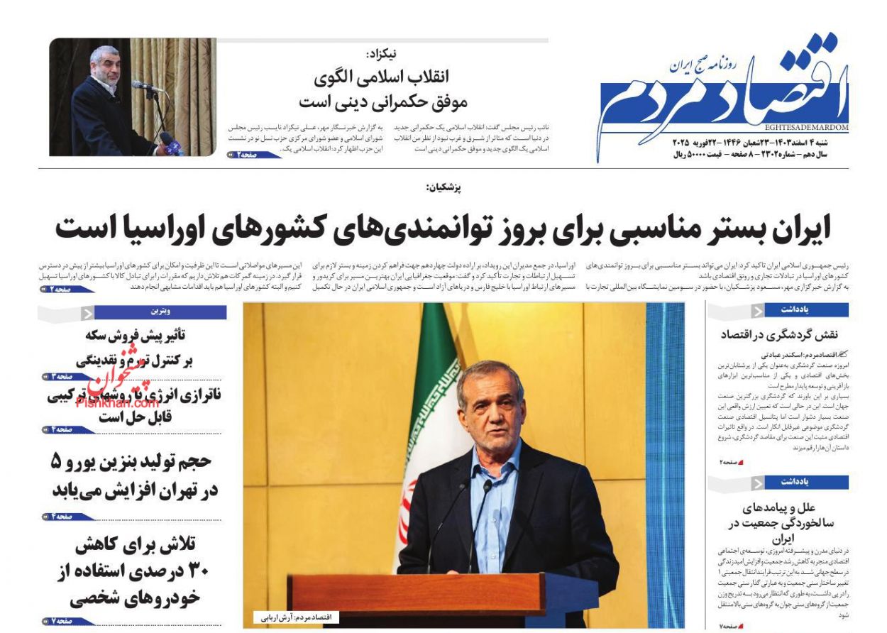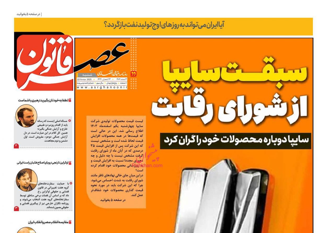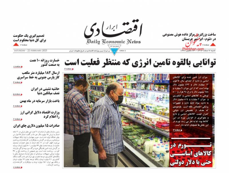 ابرار اقتصادی ، شنبه ۴ اسفند