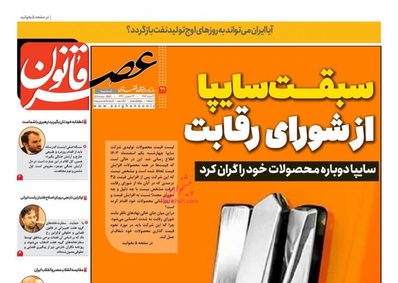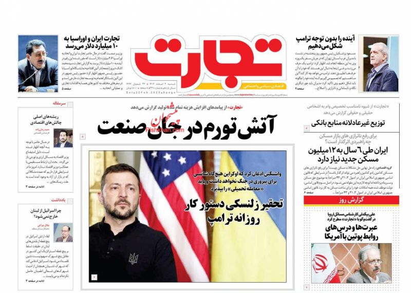 جهان صنعت ، پنجشنبه ۲ اسفند