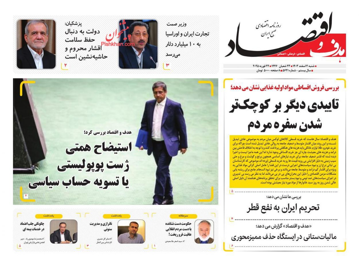 هدف و اقتصاد ، شنبه ۴ اسفند